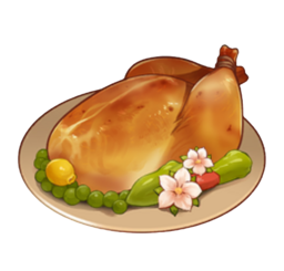 Цыплёнок в медовом соусе — восстанавливает выбранному персонажу 22% HP + 1200 HP. Цыплёнок в медовом соусе можно получить при готовке.