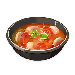 Овощной суп — восстанавливает 9% от макс. HP выбранному персонажу, затем каждые 5 сек. восстанавливает 260 HP в течение 30 сек. Овощной суп можно приобрести у торговцев и получить при готовке.